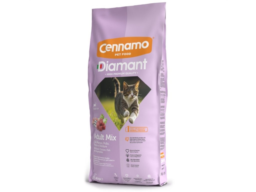 Diamant Cat Adult Mix kompletní krmivo pro dospěl kočky s hovězím, kuřecím, rybou a zeleninou.