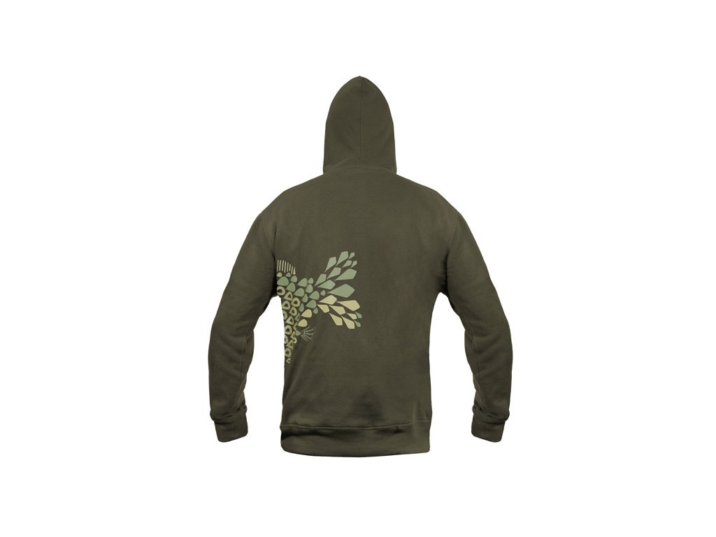 Je vyrobena z materiálu tmavě zelené barvy, čímž dokonale zapadne do přírodního prostředí. Motiv kapra vyobrazený na mikině je kompletně tvořen z jednotlivých prvků kaprařských montáží jako jsou obratlíky, olůvka, návazec a podobně. Tím se stává Delphin TACKLE rozpoznatelným a opravdu jedinečným kouskem mezi kaprařským oblečením. V přední části disponuje dvěma kapsami, které umožňují ohřátí rukou v chladném počasí, ale také uschování a přenos různých věcí.
