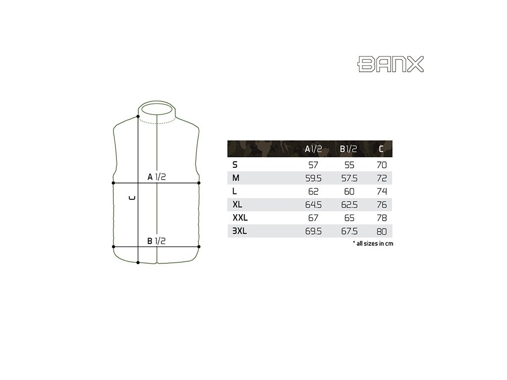 Zapínání je zajištěno pomocí kvalitního zipu, překrytého z vnější strany tkaninou, což zvyšuje jeho odolnost vůči vnějším podmínkám. Na obou stranách se nacházejí dostatečně velké kapsy na ruce nebo pro odložení potřebného příslušenství. Vesta Banx disponuje také vyvýšeným límcem pro lepší překrytí krku a šíje při nízkých teplotách vzduchu.
