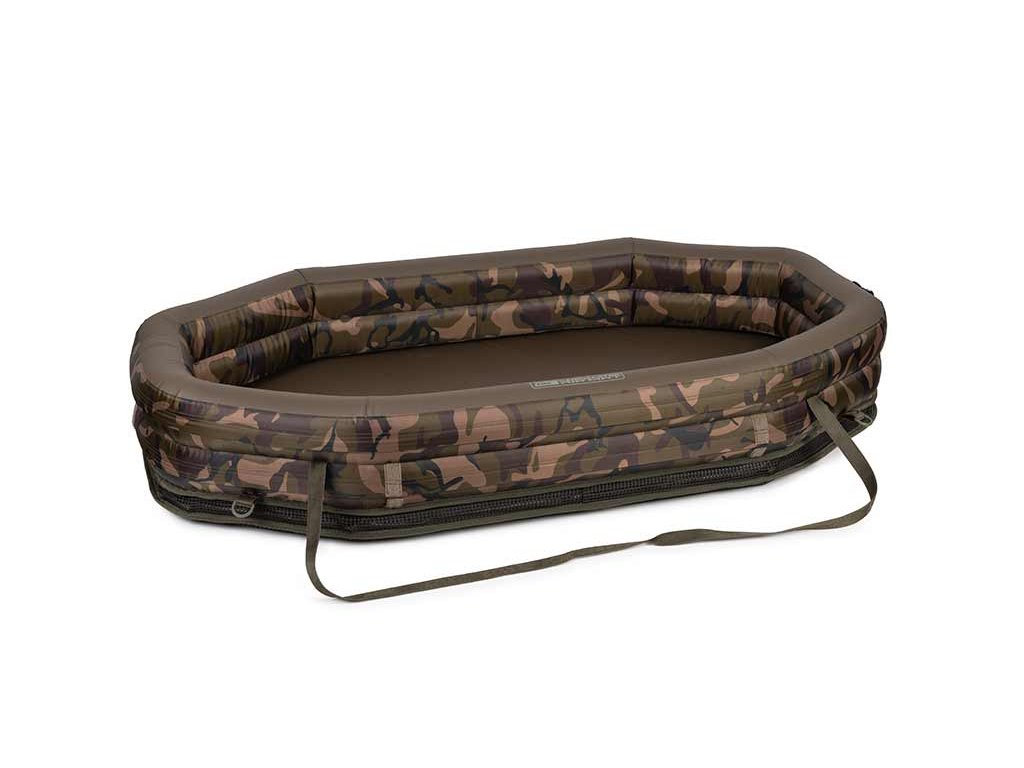 Oválná nafukovací podložka, navržená pro maximální ochranu ulovené ryby se svrchní polyesterovou látkou Fox camo.