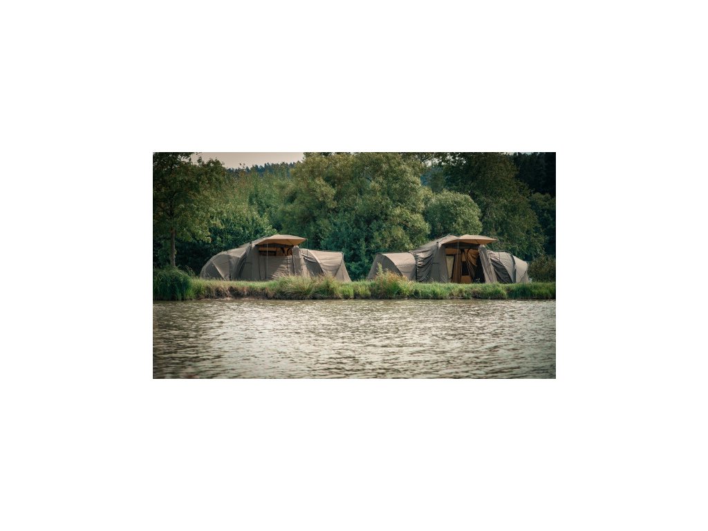 - K přístřešku Base Camp lze pomocí Bivvy Connection Kitu připojit jakýkoliv bivak nebo brolly na trhu