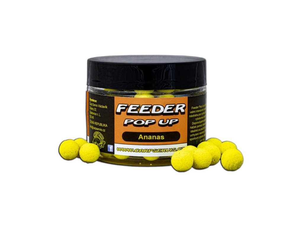 Feeder Pop Up přináší do rodiny feederových nástrah jednu ze zásadních dimenzí pro lov nadprůměrných kaprů pomocí této akční rybolovné techniky. Především tyto mini plovoucí nástrahy dokáží zaujmout kapitálního kapra. Zvolené aromatické varianty Feeder Pop Up patří mezi nejúspěšnější v naší nabídce. Teoreticky lze říci, že by bylo možné dát na jejich úspěšnost záruku.