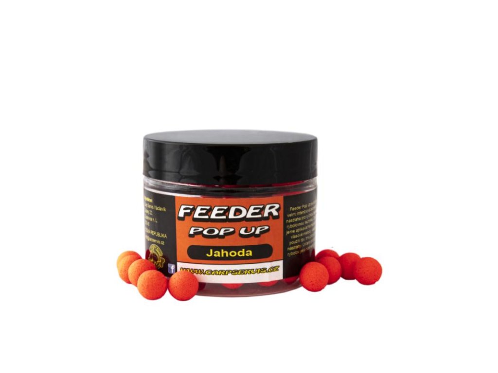 Feeder Pop Up přináší do rodiny feederových nástrah jednu ze zásadních dimenzí pro lov nadprůměrných kaprů pomocí této akční rybolovné techniky. Především tyto mini plovoucí nástrahy dokáží zaujmout kapitálního kapra. Zvolené aromatické varianty Feeder Pop Up patří mezi nejúspěšnější v naší nabídce. Teoreticky lze říci, že by bylo možné dát na jejich úspěšnost záruku.