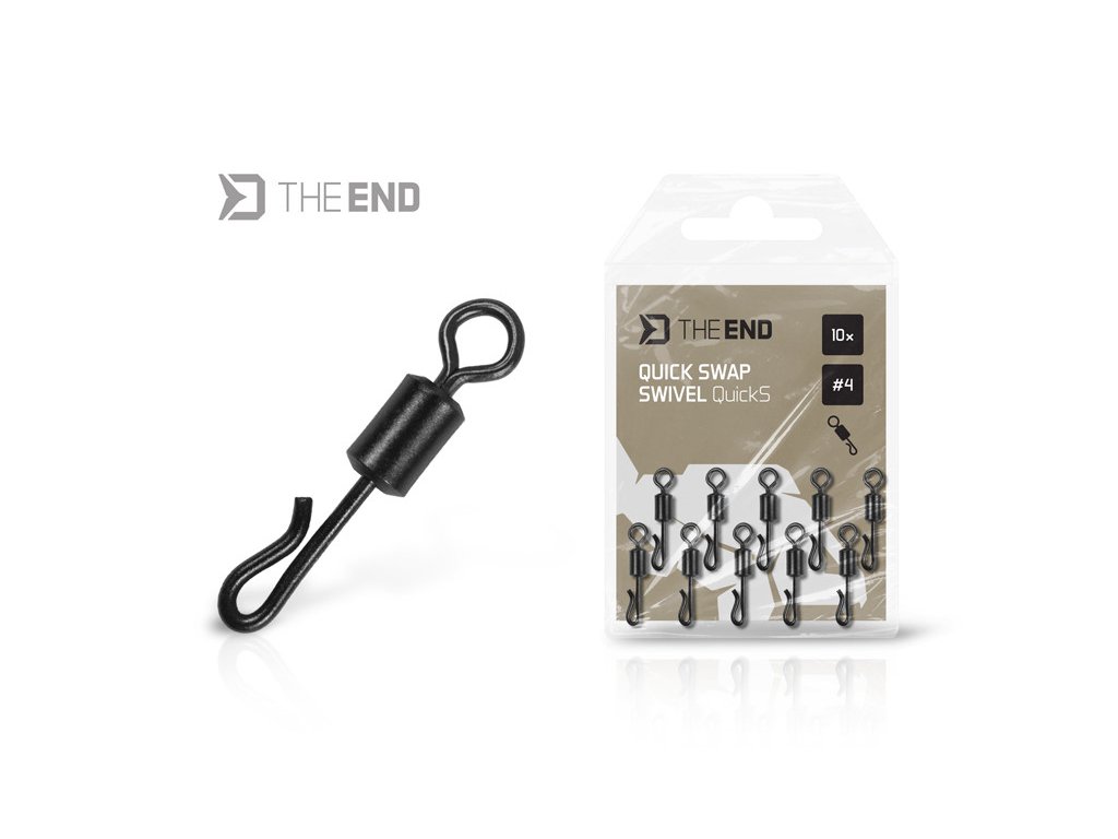 Pevný rychloupínací obratlík "Quick Swap" slouží pro rychlou výměnu hotových návazců. Balení obsahuje ideální velikost číslo 4, kterou využijete v drtivé většině situací. Díky provedení obratlíku upevníte návazec pomocí smyčky velmi rychle a jednoduše. Špičkové detaily, dlouhá trvanlivost a spolehlivé systémy pro vaše kaprařské návazce, to je TheEND! Protože konec sestavy je nový začátek vašeho rybářského příběhu!